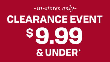 Save now! Shop in store and get $9.99 & under on clearance event.