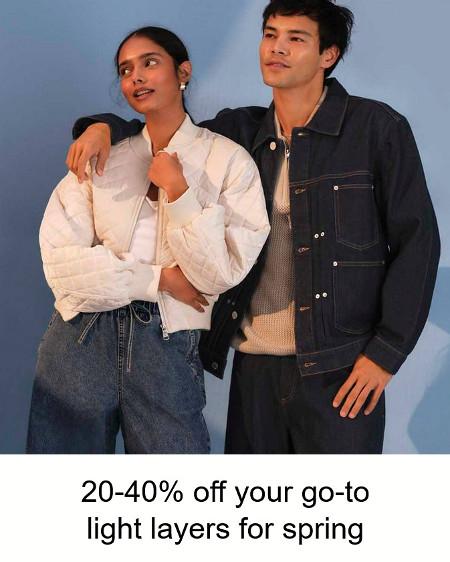 Limited-time savings! Shop in store and get up to 40% off lightweight spring jackets.